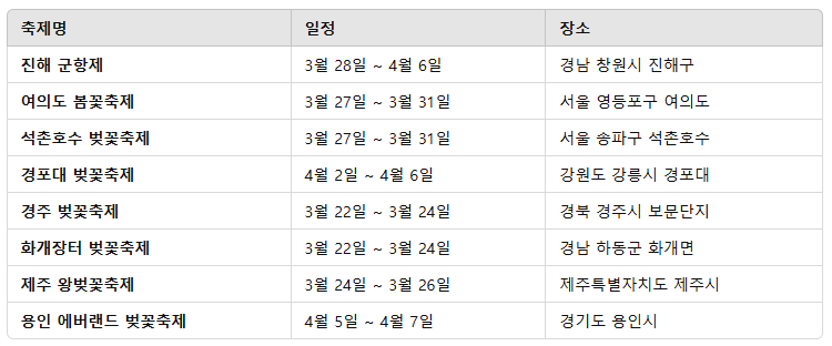 2025년 전국 벚꽃 축제 일정