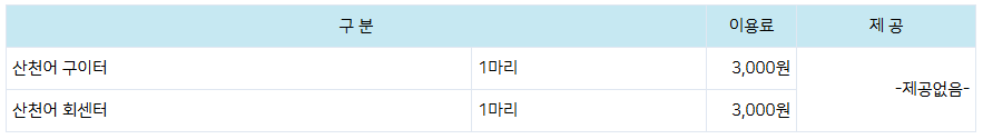 ※ 잡아온 산천어 이외에 별도 판매는 하지 않습니다.