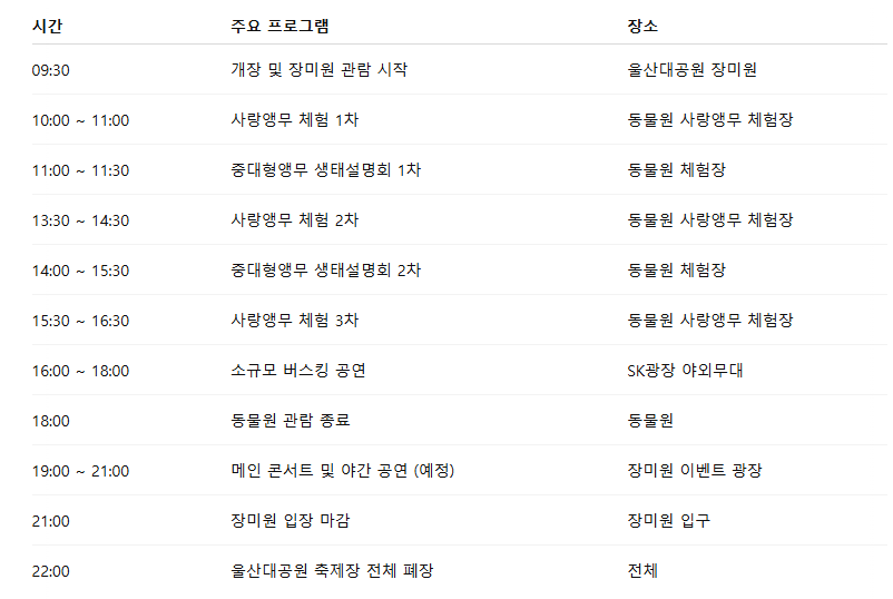 - 장소: 울산대공원 장미원 및 남문, SK광장 일원