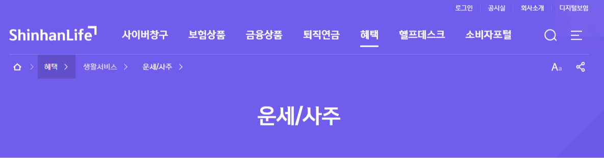 다음에서 신한라이프에서 제공하는 정통운세로 한해를 행운을 미리 점쳐 보시길 바랍니다.