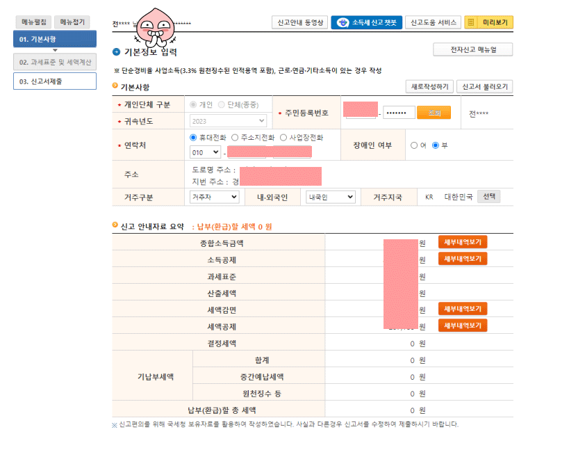 로그인을 하면 개인 소득이 자동으로 잡힙니다.