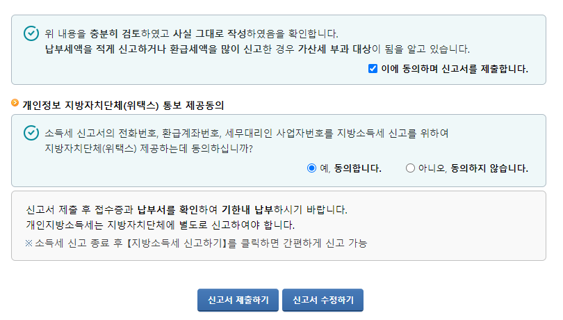 3. 만약 납부금액이 있거나 환급금이 있다면 아래 신고서를 제출하면 됩니다.