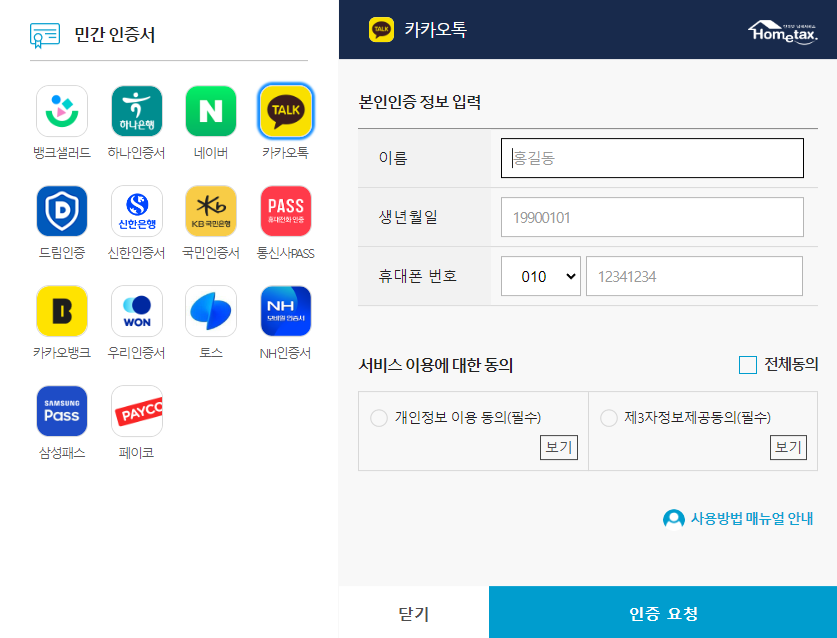 홈택스 앱 설치 후 합니다. 홈택스와 방법은 동일합니다.
