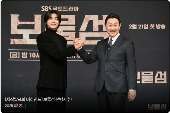 SBS 금토드라마 '보물섬' 첫 방송, 강렬한 시작! 2025년 2월 21일, SBS의 기대작 금토 드라마 '보물섬'이 마침내 베일을 벗으며 뜨거운 화제를 불러일으켰다. 2조 원의 정치 비자금을 둘러싼 거대한 음모, 배신, 그리고 복수를 그린 미스터리 스릴러 ‘보물섬’은 박형식, 허준호 등 실력파 배우들의 압도적인 연기력과 손에 땀을 쥐게 하는 전개로 금요일 밤을 장악할 예정이다.