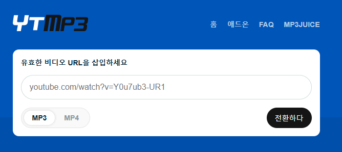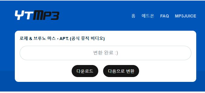 다음에서 비슷한 사이트를 확인하시길 바랍니다. ytmp3와 동일한 가입과 설치없이 주소만 붙이면 되는 무료 사이트입니다. 유튜브 음원 추출 시 함께 알아두시면 좋은 사이트입니다.